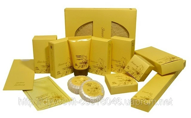 Наборы для гостиниц с нейтральным логотипом: мини-косметика, набор для бритья, набор для полости рта, швейный набор, косметический набор, шапочка для душаю