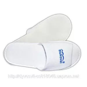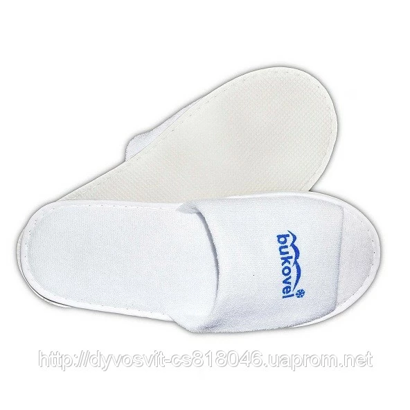 Тапочки махровые с логотипом. Открытый носок. Логотип напечатан.