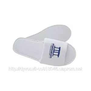 Тапочки велюровые с логотипом. Логотип нанесен вышивкой. Открытый носок.