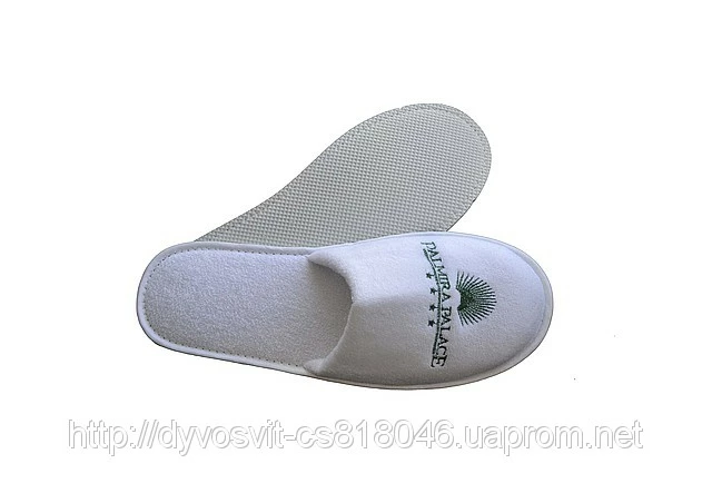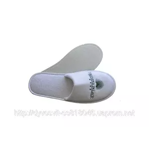 Тапочки велюровые с логотипом. Логотип нанесен вышивкой. Закрытый носок.